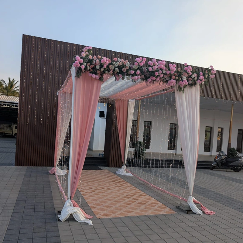 Begin your new life journey in the best venue that blends love, happiness, elegance, and celebration. Our best outdoor engagement hall in Coimbatore offers a comfortable and stylish setting for your engagement, also known as Nichayathartham or Nichayam. You can easily organize your engagement event, with the choice of decor, efficient movement of guests, and modern facilities. The serene outdoor ambiance creates beautiful memories surrounded by nature, while our professional support and warm hospitality ensure every moment feels timeless and joyful.