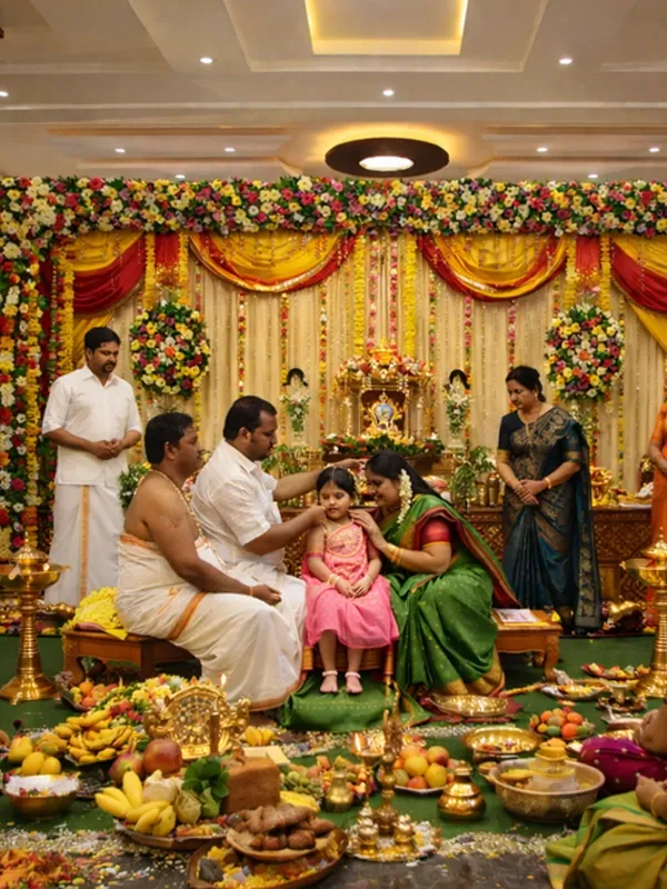 At Vaibhav Mahal near Keeranatham, we make sure every occasion is joyful and unforgettable. Keeranatham is serene, has ample greenery, and excellent road access, which ensures easy access. Our hall is ideal for hosting weddings, receptions, reunions, puberty ceremonies, birthday parties, and many other family occasions. In addition to the main hall, we have separate air-conditioned bride and groom rooms, with buffet setting and long table dining arrangements, and ample parking space for your guests. Our team at Vaibhav Mahal strives to make everything comfortable, stunning, and organized so your family and friends can appreciate every moment.