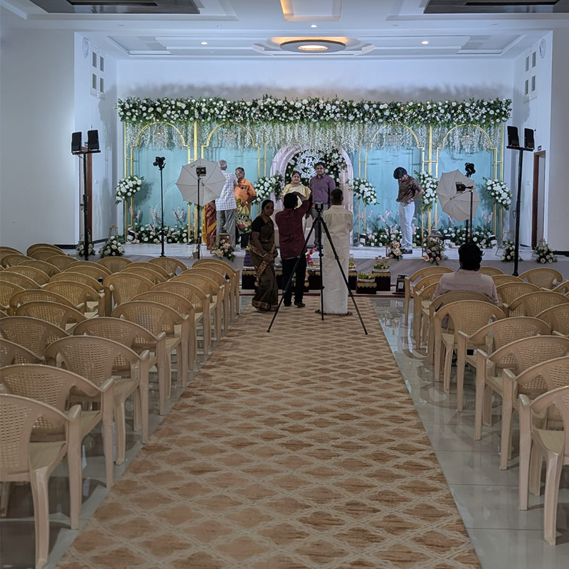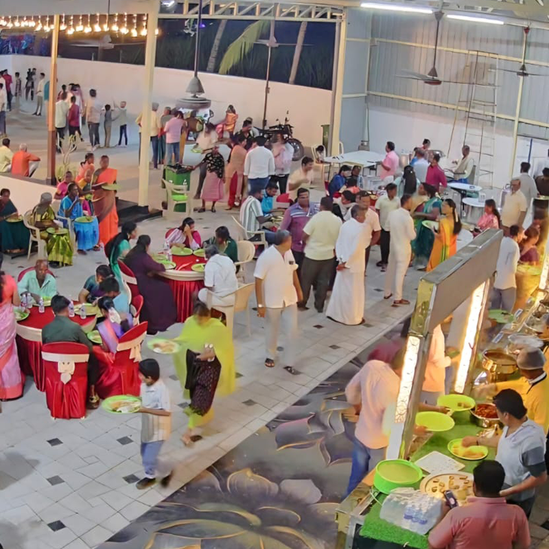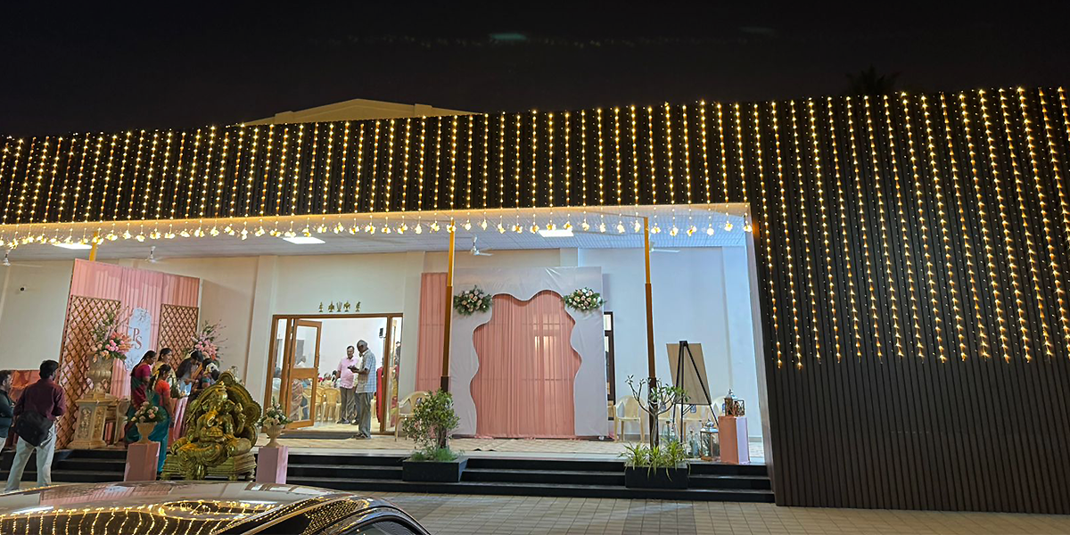 Your wedding deserves a venue that brings elegance, comfort and celebration perfectly. Our marriage and reception hall offers a comfortable and cozy venue where families can gather, where people can experience traditions and create lifelong memories. Decor-friendly design, smooth flow of guests, and all other features of the hall are designed to support a happy and stress-free wedding. An open lawn area beside the hall adds a refreshing outdoor touch, ideal for gatherings and photo sessions.